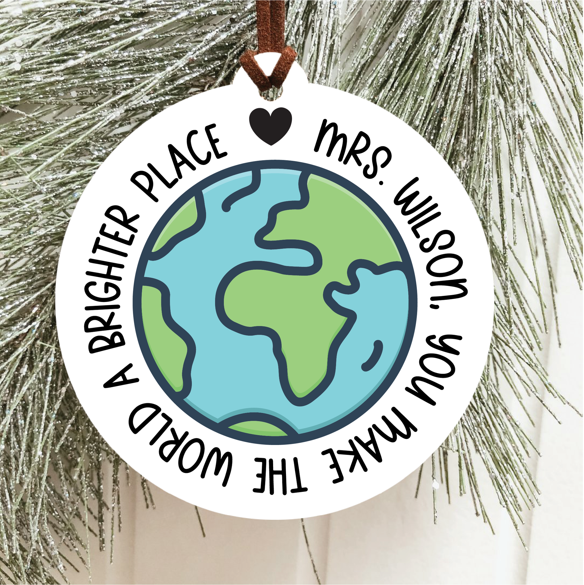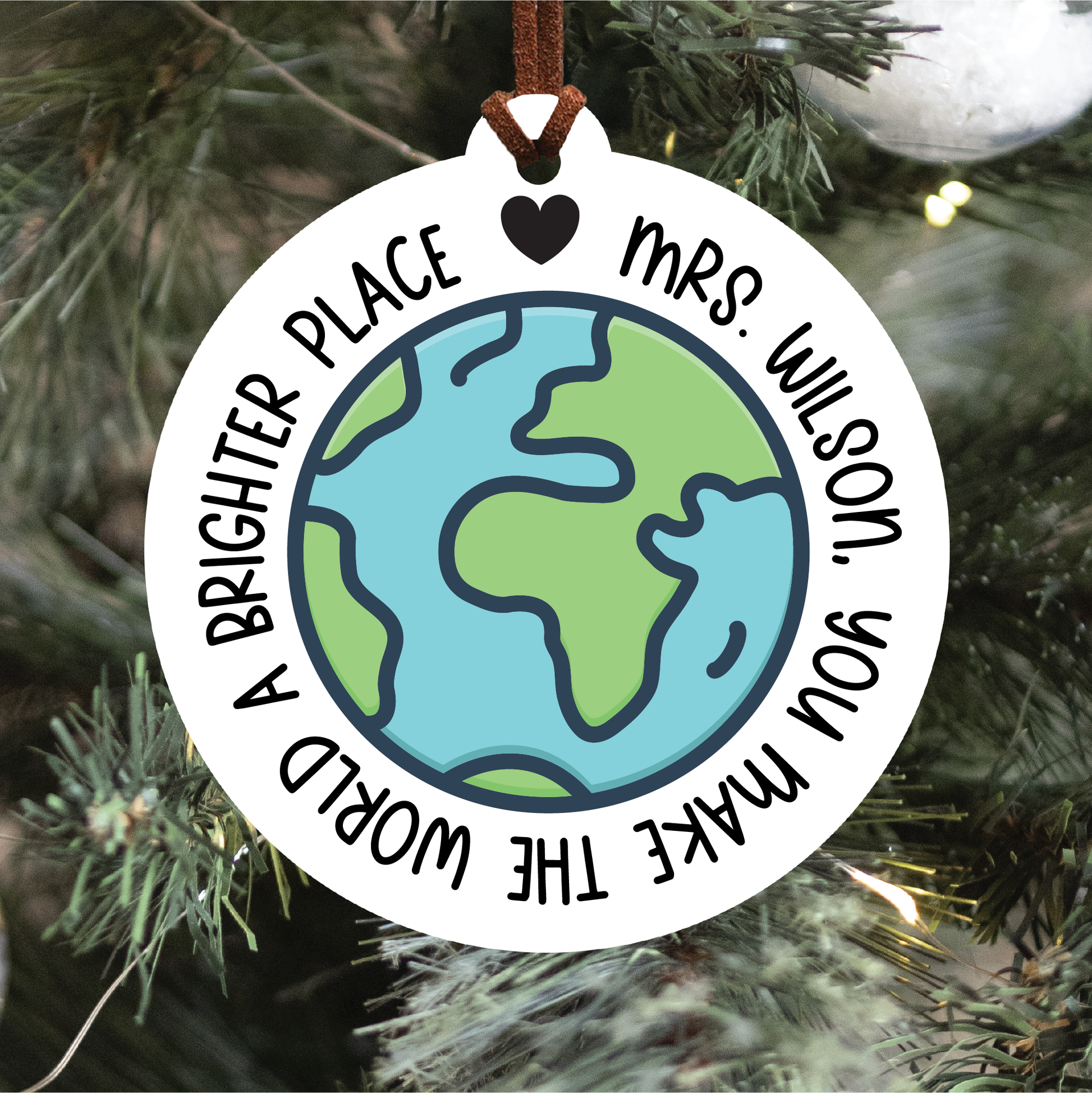 Each ornament is laser cut from 1/8" white acrylic and then printed with permanent ink. They are finished with a brown suede string for a modern look. The back of the ornament will be white.